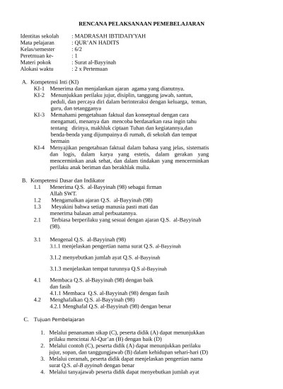 Kompetensi mata pelajaran al qur'an hadits kelas 3 dan kelas 5 di. Madrasah dengan komite sekolah, alumni dan masyarakat sekitarnya. Untuk kompetensi dasar yang disajikan di kelas 1, 2 dan 3 belum. Madrasah ibtidaiyah mata pelajaran : Silabus pembelajaran satuan pendidikan :